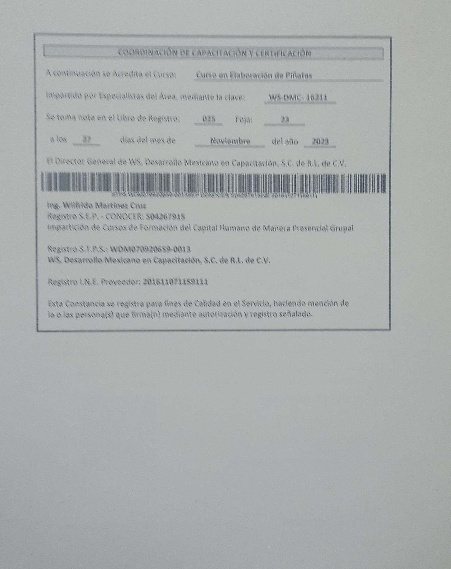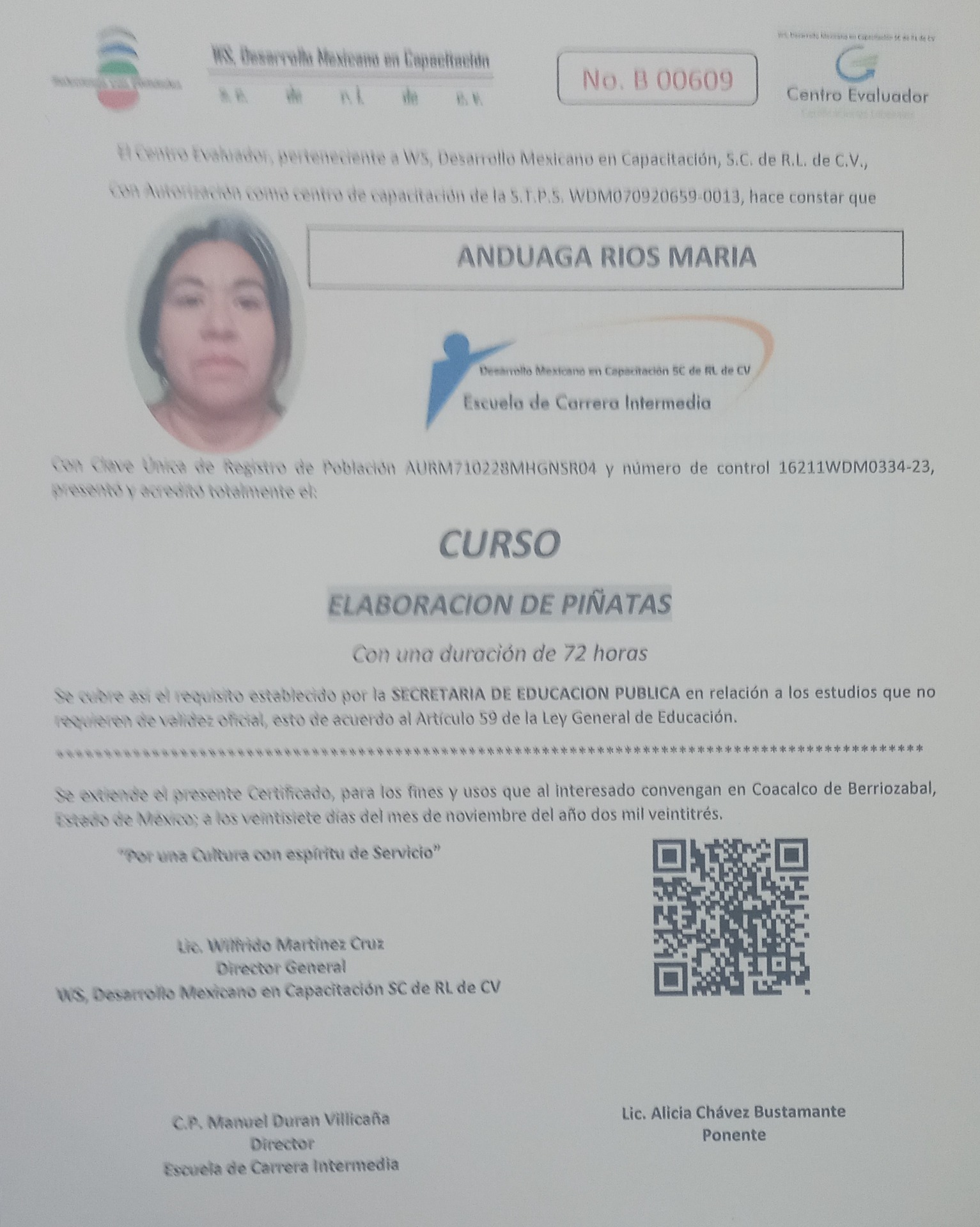 Constancia de Acreditación de Curso en Elaboración de Piñatas: