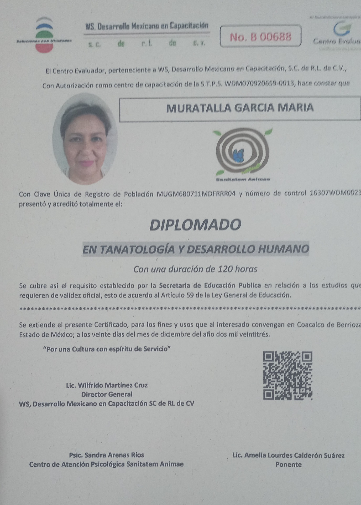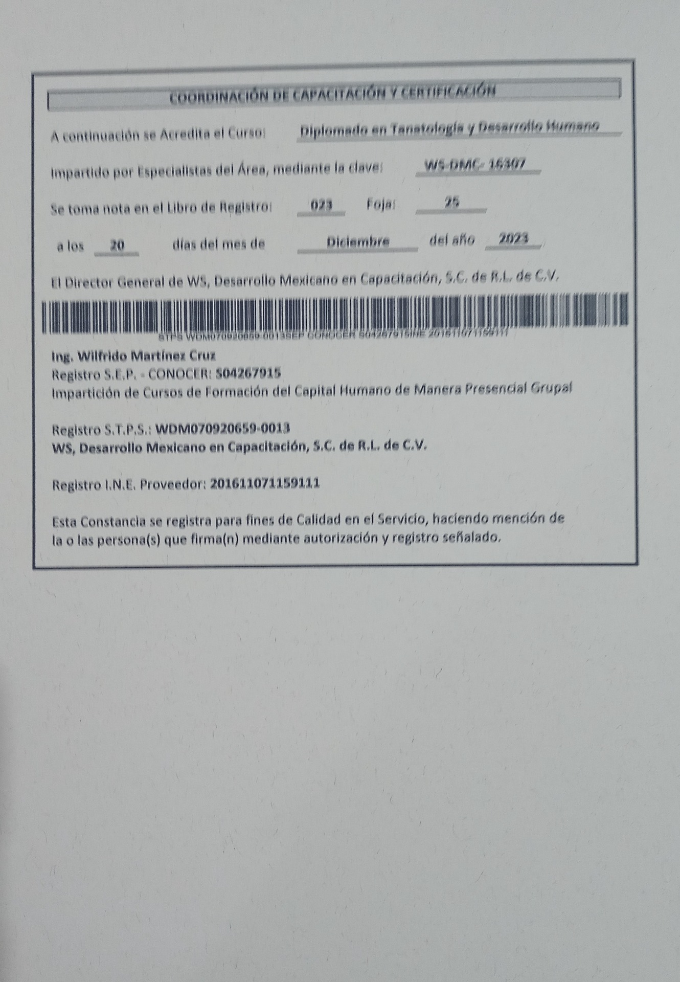 Constancia de Acreditación de Diplomado en Tanatología y Derechos Humanos: