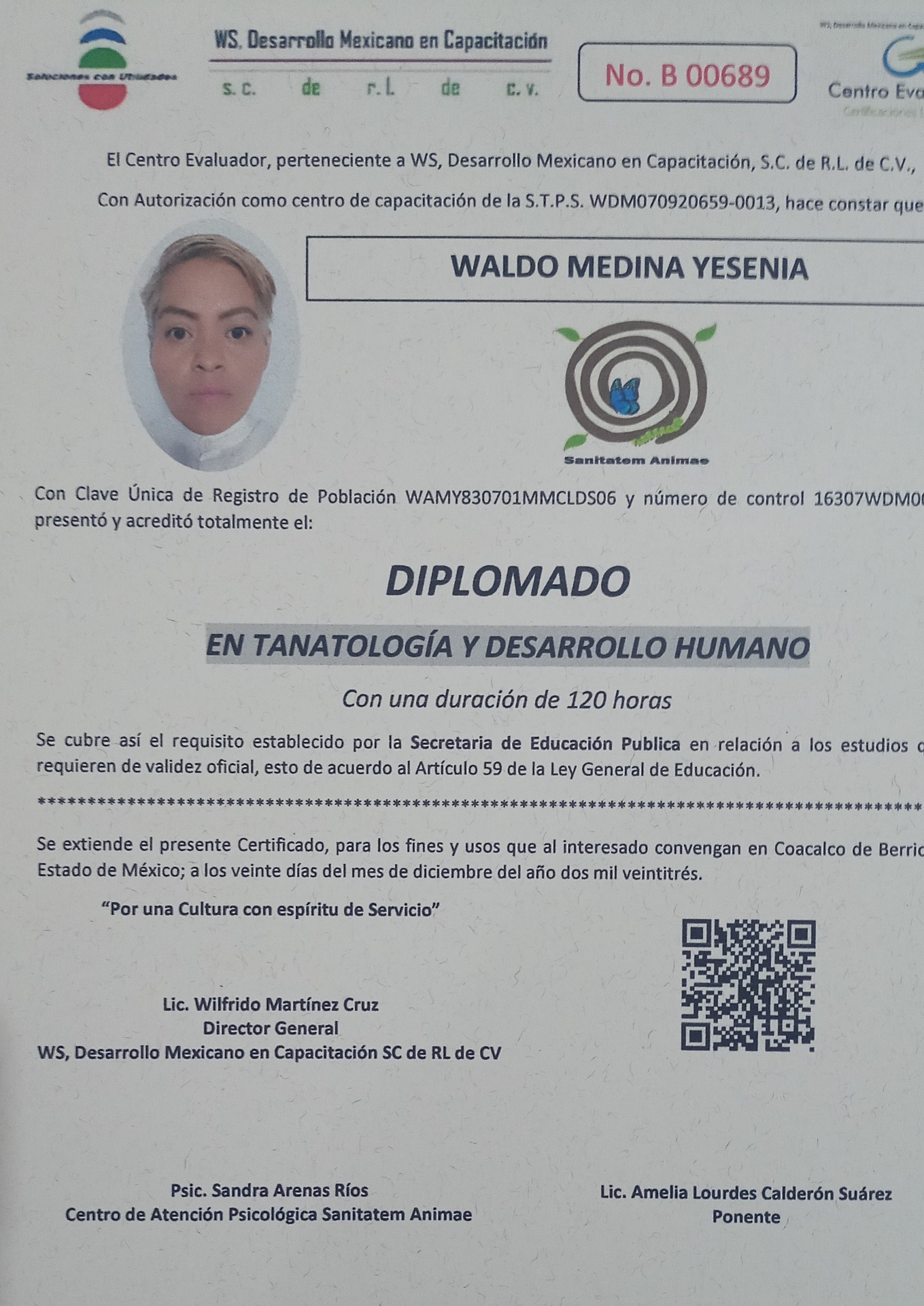Constancia de Acreditación de Diplomado en Tanatología y Derechos Humanos: